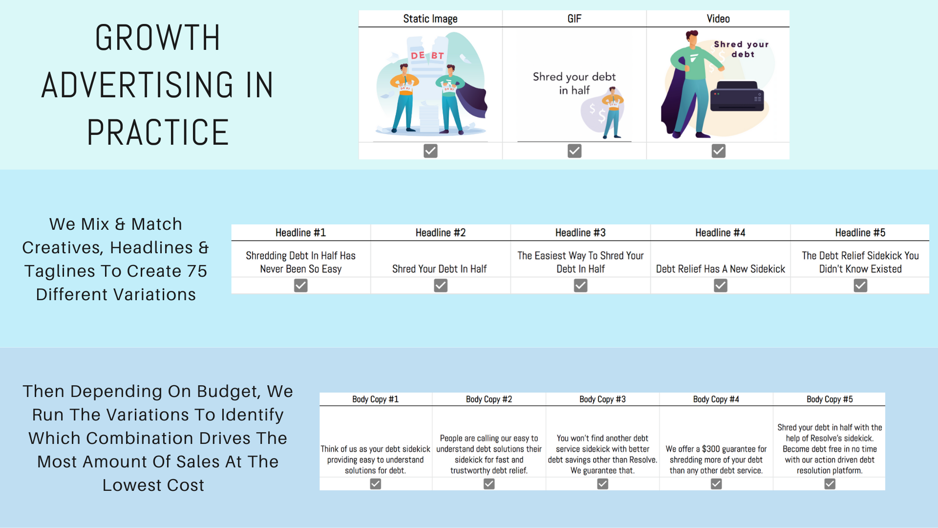 It’s not enough to A/B test anymore. You need to A/B/C/D/E/F/G test and here is why: the variable in all of this digital advertising is your creative. With these digital advertising platforms, you can run 10 completely different ads to the same group of people and see which one people click on most and then stop running the 9 ads that didn’t do as well as that one.